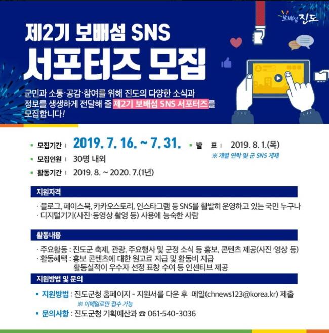 [È£³²´º½º¶óÀÎ = ±è°æÀÚ ±âÀÚ] Áøµµ±ºÀÌ Á¦2±â º¸¹è¼¶ SNS ¼Æ÷ÅÍÁ ¿À´Â 31ÀϱîÁö ¸ðÁýÇÑ´Ù.
