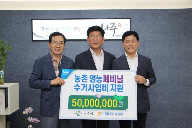 [È£³²´º½º¶óÀÎ = ±è°æÀÚ ±âÀÚ] ³ªÁÖ½Ã(½ÃÀå °ÀαÔ)´Â ÃÖ±Ù(26ÀÏ) NH³óÇù ³ªÁÖ½ÃÁöºÎ(ÁöºÎÀå ÀÌ»óÁø)¿Í (»ç)³óÃÌ»ç¶û¹ü±¹¹Î¿îµ¿º»ºÎ¿¡¼ ³óÃÌ¿µ³óÆóºñ´Ò ¼ö°Å »ç¾÷À» À§ÇÑ Áö¿ø±Ý 5õ¸¸ ¿øÀ» ±âÅ¹ÇØ¿Ô´Ù°í 29ÀÏ ¹àÇû´Ù.