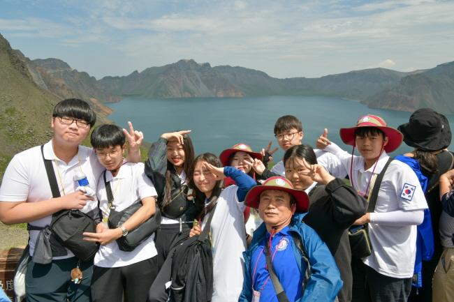 Àü³²ÅëÀÏÈñ¸Á¿Â÷Çб³ ÇлýµéÀº Áö³´Þ 31ÀÏ Áß±¹ÀÇ ¼ÆÄ»ê¹®À» ÅëÇØ ¹éµÎ»ê õÁö¿¡ ¿Ã¶ú´Ù. ¹éµÎ»ê õÁö´Â Àü³² Çлýµé¿¡°Ô Á¶±¹ÀÇ ÃÖ°íºÀ¿¡ ¿Ã¶ó Èñ¸ÁÀ» ²Þ²Ù´Â ¼ø°£À» ¸Àº¸°Ô Çß´Ù. ÇлýµéÀÇ ¹÷Âù °¨µ¿¿¡ º¸´äÀÌ¶óµµ Çϵí õÁö´Â Àå¾öÇÑ ¸ð½ÀÀ» µå·¯³» º¸¿´°í ¿©±âÀú±â ź¼ºÀÌ ÅÍÁ® ³ª¿Ô´Ù.