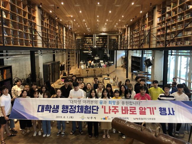 [È£³²´º½º¶óÀÎ = ±è°æÀÚ ±âÀÚ] ³ªÁÖ½Ã(½ÃÀå °ÀαÔ)´Â Áö³ 7¿ù 24Àϰú 8¿ù 1ÀÏ, 2ȸ¿¡ °ÉÃÄ ´ëÇлý ÇàÁ¤ üÇè´ÜÀÌ Âü¿©ÇÏ´Â ¡®³ªÁÖ ¹Ù·Î¾Ë±â¡¯ Çà»ç¸¦ ÁøÇà, Áö¿ª ¹Ì·¡ ¹ßÀü»óÀ» Çлýµé°ú °øÀ¯Çß´Ù.
