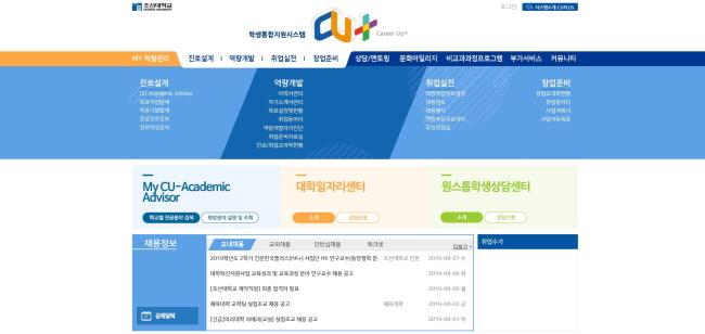 [È£³²´º½º¶óÀÎ = ¼ÀºÈ« ±âÀÚ] Á¶¼±´ëÇб³(ÃÑÀåÁ÷¹«´ë¸® È«¼º±Ý)°¡ CU-SP¹®È¸¶Àϸ®Áö&ºñ±³°ú±³À°°úÁ¤°ú Ãë¾÷Æ÷ÅÐ, ¿ø½ºÅé»ó´ã½Ã½ºÅÛ·Î ³ª´²Á® ÀÖ´ø ±âÁ¸ ȨÆäÀÌÁö¸¦ ÅëÇÕÇÑ »õ·Î¿î ȨÆäÀÌÁö¡®ÇлýÅëÇÕÁö¿ø½Ã½ºÅÛ ¾¾À¯Ç÷¯½º(CU+)¡¯¸¦ 13ÀϺÎÅÍ º»°Ý ¿î¿µÇÑ´Ù.