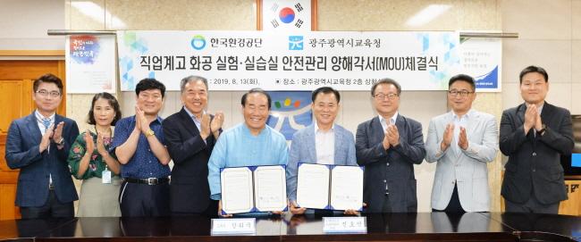 ±¤ÁÖ±¤¿ª½Ã±³À°Ã»(±³À°°¨ ÀåÈÖ±¹)Àº 8¿ù13ÀÏ Çѱ¹È¯°æ°ø´Ü È£³²±ÇÁö¿ªº»ºÎ(º»ºÎÀå ÁøÈ¿¾ð)¿Í ¡®±¤ÁÖ Á÷¾÷°è°í Ȱø ½ÇÇ衤½Ç½À½Ç ¾ÈÀü°ü¸® ¾çÇØ °¢¼(MOU)¡¯¸¦ ü°áÇß´Ù. ¾çÇØ°¢¼¿£ ½Ã±³À°Ã»°ú À¯°ü±â°üÀÌ ÇùÄ¡¸¦ ÅëÇØ ÇлýÀ» À§ÇÑ ¾ÈÀüÇÑ ½Ç½Àȯ°æÀ» Á¶¼ºÇÑ´Ù´Â ³»¿ëÀÌ ´ã°å´Ù.