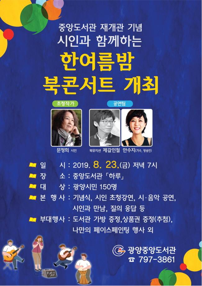 [È£³²´º½º¶óÀÎ = ±è°æÀÚ ±âÀÚ] ±¤¾ç½Ã´Â ±¤¾çÁß¾Óµµ¼°ü ¸®¸ðµ¨¸µ¿¡ µû¸¥ Àç°³°üÀ» ±â³äÇϱâ À§ÇØ ¿À´Â 23ÀÏ(±Ý) 19:00 Áß¾Óµµ¼°ü ¹®È°ø°£ ¡®ÇϷ硯¿¡¼ ¡®½ÃÀΰú ÇÔ²²ÇÏ´Â ÇÑ¿©¸§¹ã ºÏÄܼƮ¡¯¸¦ °³ÃÖÇÑ´Ù°í ¹àÇû´Ù