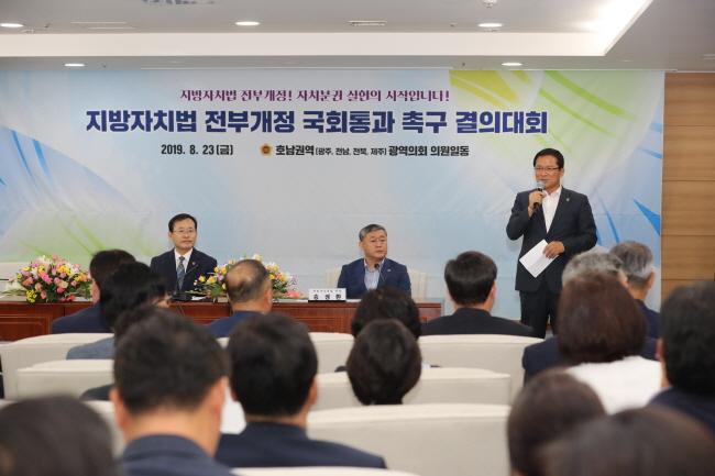 È£³²±Ç 4°³ ½Ã․µµÀÇȸ°¡ °øµ¿ ÁÖÃÖÇÏ°í ±¤ÁÖ±¤¿ª½ÃÀÇȸ°¡ ÁÖ°üÇÑ °áÀÇ´ëȸ´Â ÇöÀç ±¹È¸¿¡ °è·ù ÁßÀΡ®Áö¹æÀÚÄ¡¹ý ÀüºÎ°³Á¤¾È¡¯À» ºñ·ÔÇÑ ÀÚÄ¡ºÐ±Ç °ü·Ã ¹ý·ÉµéÀÌ ¼º°øÀûÀ¸·Î ±¹È¸¸¦ Åë°úÇÒ ¼ö ÀÖµµ·Ï È£³²±Ç ±¤¿ªÀÇȸÀÇ ÈûÀ» ¸ð¾Æ ¸ðµç ³ë·ÂÀ» ±â¿ï¿© ³ª°¡°íÀÚ Çϴµ¥ ¶æÀ» °°ÀÌÇß´Ù.