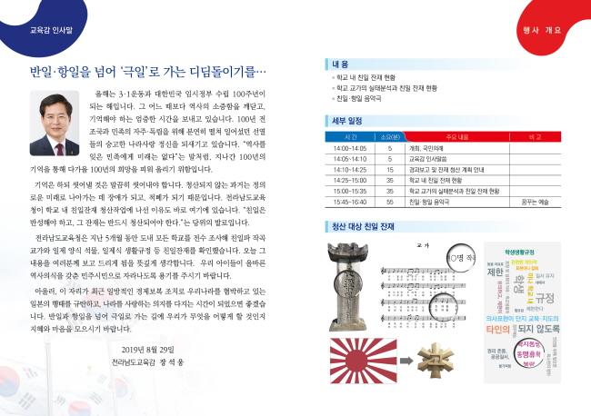 Àü¶ó³²µµ±³À°Ã»Àº ¿ÃÇØ 3.1¿îµ¿ ¹× ´ëÇѹα¹ ÀÓ½ÃÁ¤ºÎ ¼ö¸³ 100ÁÖ³âÀ» ¸Â¾Æ ±× Àǹ̸¦ ±â¸®°í ¿ª»ç±³À°À» °ÈÇϱâ À§ÇØ Çб³ ³» Ä£ÀÏÀÜÀç û»êÀÛ¾÷À» ¹úÀ̰í ÀÖ´Ù.