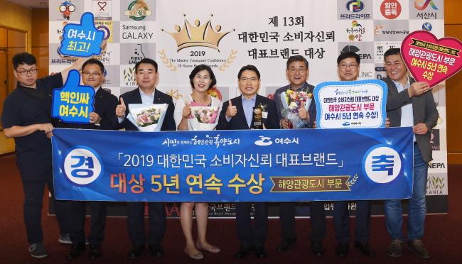 [È£³²´º½º¶óÀÎ = ±è°æÀÚ ±âÀÚ] ¿©¼ö½Ã(½ÃÀå ±Ç¿ÀºÀ)°¡ 5³â ¿¬¼Ó¡®´ëÇѹα¹ ¼ÒºñÀÚ½Å·Ú ´ëÇ¥ ºê·£µå ´ë»ó¡¯À» ¼ö»óÇß´Ù.