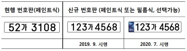 º¯°æµÇ´Â ¹øÈ£ÆÇÀº Á¾·ù°¡ 2°¡Áö´Ù. ¾ÕÀÚ¸® ¼ýÀÚ¸¸ Ãß°¡µÇ´Â ¡®ÆäÀÎÆ®½Ä ¹øÈ£ÆÇ¡¯°ú ¹øÈ£ÆÇ ¿ÞÂÊ¿¡ űع®¾ç µî Ȧ·Î±×·¥ÀÌ Æ÷ÇԵǴ ¡®Çʸ§½Ä ¹øÈ£ÆÇ¡¯ Áß Â÷·® ¼ÒÀ¯ÁÖÀÇ ÃëÇâ¿¡ µû¶ó ¼±ÅÃÇÒ ¼ö ÀÖ´Ù. ´Ù¸¸, Çʸ§½Ä ¹øÈ£ÆÇÀº 2020³â 7¿ùºÎÅÍ ±³ºÎÇÑ´Ù.