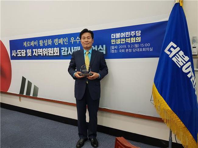 [È£³²´º½º¶óÀÎ = ±è°æÀÚ ±âÀÚ] ´õºÒ¾î¹ÎÁÖ´ç ¿©¼ö°© Áö¿ªÀ§¿øÈ¸(À§¿øÀå ÁÖöÇö)°¡ Á¦·ÎÆäÀÌ Ä·ÆäÀÎ ¿ì¼öÁö¿ª ¼±Á¤¿¡ À̾î Àü³²µµ´ç ÁÖ°ü Á¤Ã¥Æä½ºÆ¼¹ú¿¡¼ ÃÖ¿ì¼ö Á¤Ã¥ Á¦¾È Áö¿ªÀ¸·Î ¼±Á¤µÅ °ã°æ»ç¸¦ ¸Â¾Ò´Ù.