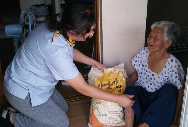 [È£³²´º½º¶óÀÎ = ±è°æÀÚ ±âÀÚ] °íÈﱺ(±º¼ö ¼Û±Í±Ù)º¸°Ç¼Ò´Â SK°íÈï´ë¸®Á¡(´ëÇ¥ Á¶±¤¿µ)¿¡¼ ±âºÎÇÑ 10kg½Ò 40Æ÷´ë¸¦ °¡Á¤ÇüÆíÀÌ ¾î·Á¿î Ãë¾à°èÃþ¿¡°Ô Àü´ÞÇß´Ù.