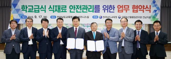 [È£³²´º½º¶óÀÎ = ¼ÀºÈ« ±âÀÚ] Àü¶ó³²µµ±³À°Ã»(±³À°°¨ Àå¼®¿õ)°ú ±¹¸³³ó»ê¹°Ç°Áú°ü¸®¿ø Àü³²Áö¿ø(Áö¿øÀå ¹ÚÁß½Å)ÀÌ 17ÀÏ Àü¶ó³²µµ±³À°Ã» ºñÁî´Ï½º½Ç¿¡¼ Çб³±Þ½Ä ½ÄÀç·á ¾ÈÀü°ü¸®¸¦ À§ÇÑ ¾÷¹«Çù¾àÀ» ü°áÇß´Ù.