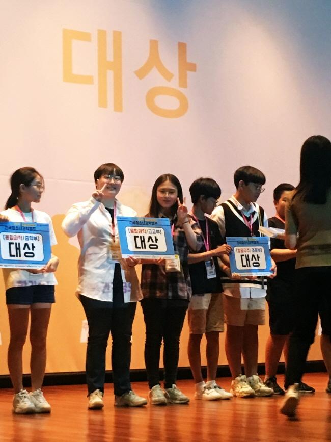 ´ëȸ´Â À¶ÇÕ°úÇÐ, °úÇÐÅä·Ð, Ç×°ø¿ìÁÖ, ¸ÞīƮ·Î´Ð½ºÀÇ 4Á¾¸ñ 11ºÎ·Î Ä¡·¯Á³°í, 17°³ ½Ã‧µµ Çлý ´ëÇ¥ 310¸íÀÌ Âü°¡Çß´Ù, ±¤ÁÖ´Â 2Á¾¸ñ(°úÇÐÅä·Ð, À¶ÇÕ°úÇÐ)¿¡ 6ÆÀ 12¸íÀÌ Âü°¡ÇØ ´ë»ó 1ÆÀ(±¤ÁÖ°úÇÐ°í ¹Ú¹Ì¸®³», ÀÌ´ÙÀÎ), Àº»ó1ÆÀ(¼Û¿øÃÊ ±è¹ÎÁÖ, ±èÀçÈñ), µ¿»ó 2ÆÀ(¼ö¿ÏÇϳªÁß ³ëÀçÀº, °¹ÎÁØ / Àü³²´ëÇб³»ç¹ü´ëÇкμ³°íµîÇб³ ±è¼¼Áø, ·ùÀç¿ì), Àå·Á»ó 2ÆÀ(¸¶ÀçÃÊ ¼Û¿¬ÁÖ, ·ù´ÙÀÎ / ¿î³²Áß ±è¿¹´ã, õ¿¬¼ö)ÀÌ ¼ö»óÇÏ´Â Äè°Å¸¦ ÀÌ·ç¸ç ±¤ÁÖ °úÇб³À° À§»óÀ» µå³ô¿´´Ù.