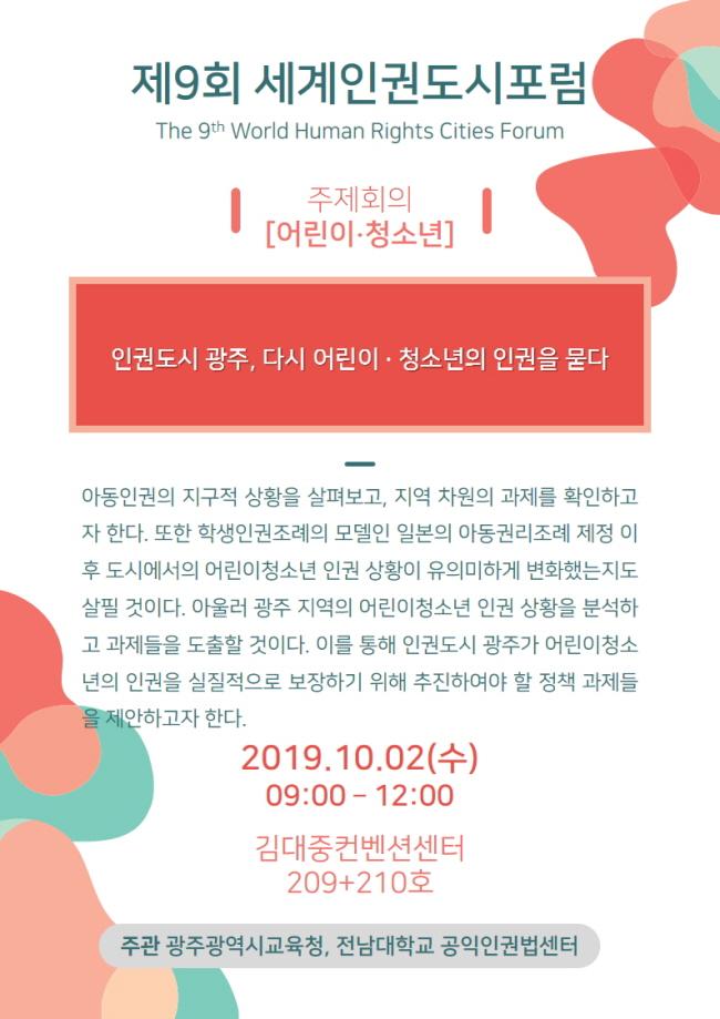 ±¤ÁÖ±¤¿ª½Ã±³À°Ã»(±³À°°¨ ÀåÈÖ±¹)Àº ¿À´Â 10¿ù 2ÀÏ(¼ö) ¿ÀÀü 9½Ã ±è´ëÁßÄÁº¥¼Ç¼¾ÅÍ 209+210 ȸÀǽǿ¡¼ ¡®Àαǵµ½Ã ±¤ÁÖ, ´Ù½Ã ¾î¸°ÀÌû¼Ò³âÀÇ ÀαÇÀ» ¹¯´Ù¡¯¶ó´Â ÁÖÁ¦·Î ±¹Á¦ ¼¼¹Ì³ª¸¦ °³ÃÖÇÑ´Ù°í 25ÀÏ ¹àÇû´Ù.