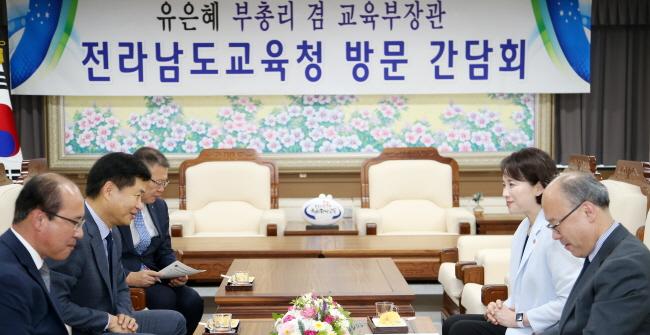 À¯ÀºÇý ºÎÃѸ®´Â ÇØ³² ¿ÁõÃʱ³ ¹æ¹®¿¡ ¾Õ¼ Àü¶ó³²µµ±³À°Ã»¿¡ µé·¯ Àå¼®¿õ ±³À°°¨À» ºñ·ÔÇÑ ±³À°Ã» °£ºÎµé°ú °£´ãȸ¸¦ °®°í ÀÛÀºÇб³ »ì¸®±â µî ³ó¾îÃÌ Áö¿ª ±³À° Ȱ¼ºÈ ¹æ¾È¿¡ ´ëÇØ ÀǰßÀ» ³ª´³´Ù.
