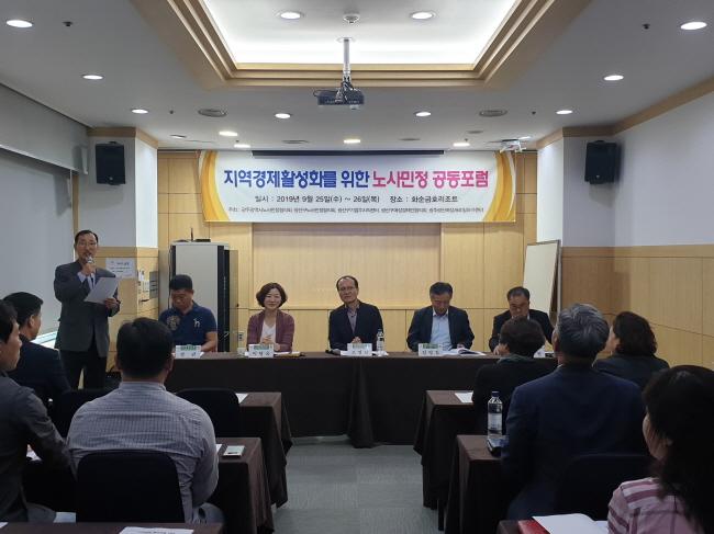 [È£³²´º½º¶óÀÎ = ¼­ÀºÈ« ±âÀÚ] ±¤ÁÖ±¤¿ª½Ã ±¤»ê±¸ ³ë»ç¹ÎÁ¤ÇùÀÇȸ(À§¿øÀå±è»ïÈ£)°¡ ±¤Áֽà ³ë»ç¹ÎÁ¤ÇùÀÇȸ¿Í ¡®Áö¿ª°æÁ¦ Ȱ¼ºÈ­¸¦ À§ÇÑ ³ë»ç¹ÎÁ¤ °øµ¿Æ÷·³¡¯À» È­¼ø ±ÝÈ£¸®Á¶Æ®¿¡¼­ °³ÃÖÇß´Ù.
