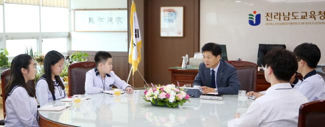 Àå¼®¿õ ±³À°°¨Àº 25ÀÏ ¿ÀÈÄ Àü¶ó³²µµ±³À°Ã» 5Ãþ ±³À°°¨½Ç¿¡¼ ±¤ÁÖ±³À°´ëÇб³ ¸ñÆ÷ºÎ¼³ÃʵîÇб³(ÀÌÇÏ ¡®¸ñÆ÷ºÎ¼³ÃÊ¡¯) 6Çгâ Çлý 5¸íÀ» ¸¸³ª ¾ÆÀ̵éÀÇ ²Þ°ú µµÀü, ¹Ì·¡ Èñ¸Á µîÀ» ÁÖÁ¦·Î ÀÎÅͺ並 Çß´Ù.