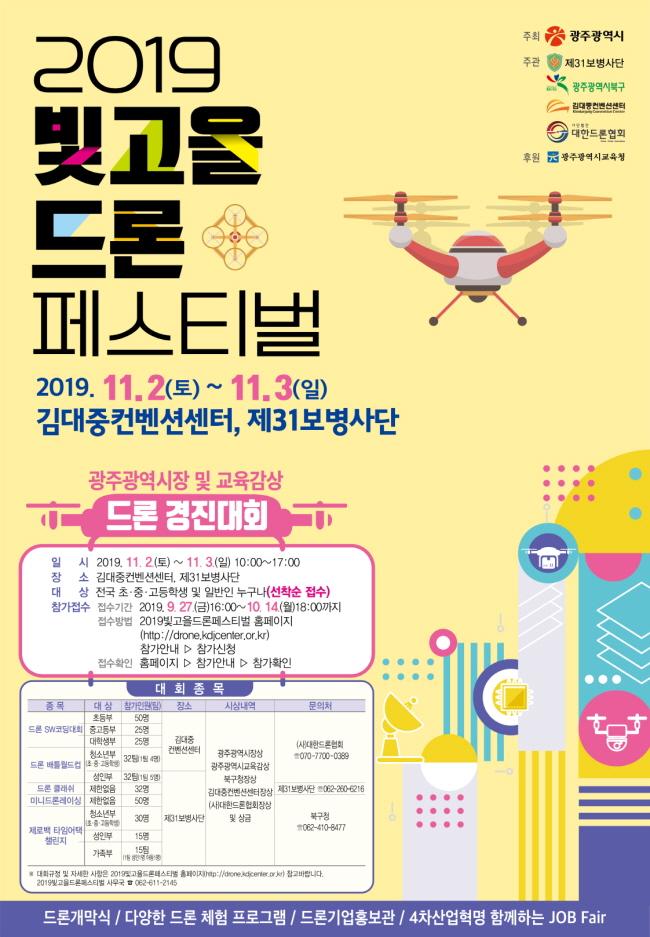 [È£³²´º½º¶óÀÎ = ¼ÀºÈ« ±âÀÚ] ±¤ÁÖ±¤¿ª½Ã´Â ¹Ì·¡ ½Å¼ºÀå»ê¾÷ÀÎ µå·Ð»ê¾÷ À°¼ºÀ» À§ÇØ 11¿ù2ÀϺÎÅÍ 3ÀϱîÁö ±è´ëÁßÄÁº¥¼Ç¼¾ÅÍ, Á¦31º¸º´»ç´Ü¿¡¼ ¡®2019ºû°íÀ»µå·ÐÆä½ºÆ¼¹ú¡¯À» µ¿½Ã °³ÃÖÇÑ´Ù.