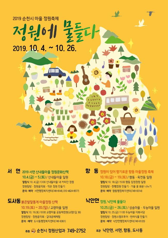 [È£³²´º½º¶óÀÎ = ±è°æÀÚ ±âÀÚ] ¼øÃµ½Ã¿¡¼´Â ¿À´Â 10¿ù 4ÀÏ(±Ý) ~ 10¿ù 26ÀÏ(Åä)ÀϱîÁö ¾Æ¸§´Ù¿î °³ÀÎÁ¤¿ø°ú ¸¶À»Á¤¿øÀ» °³¹æÇØ ¹æ¹®°´µéÀÌ ÀÚÀ¯·Ó°Ô Á¤¿øÀ» °ü¶÷Çϸç, ´Ù¾çÇÑ Á¤¿ø¹®È ÄÜÅÙÃ÷¸¦ Áñ±æ ¼ö ÀÖ´Â 2019 ¼øÃµ½Ã ¸¶À» Á¤¿øÃàÁ¦ ¡®Á¤¿ø¿¡ ¹°µé´Ù¡¯°¡ °³ÃֵȴÙ.