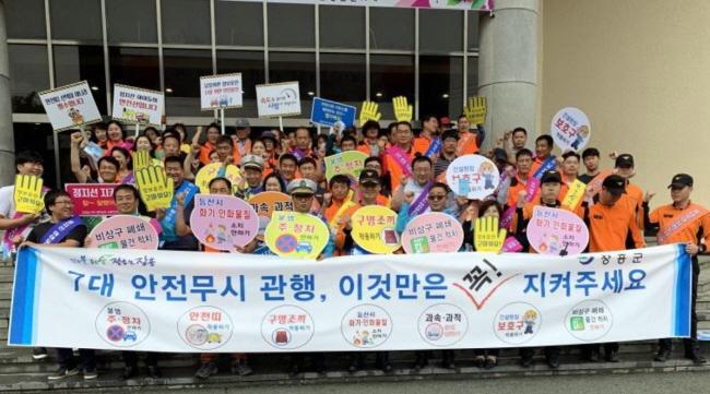 ÀåÈﱺ¹Îȸ°ü¿¡¼, ºÒ¹ý ÁÖÁ¤Â÷ ¾ÈÇϱâ, ¾ÈÀü¶ì Âø¿ëÇϱâ, ±¸¸íÁ¶³¢ Âø¿ëÇϱâ, µî»ê ½Ã ȱâ.ÀÎȹ°Áú ¼ÒÁö ¾ÈÇϱâ, °ú¼Ó.°úÀû ¿îÀü¾ÈÇϱâ, °Ç¼³ÇöÀå º¸È£±¸ Âø¿ëÇϱâ, ºñ»ó±¸ Æó¼â ¹× ¹°°Ç ÀûÄ¡ ¾ÈÇϱ⠱¸È£¸¦ ¿ÜÄ¡°í ¾ÈÀü¹«½Ã 7´ë °üÇà ±ÙÀýÀ» À§ÇØ ¾ÕÀ弱⸦ ´ÙÁüÇÏ°í °¡µÎÄ·ÆäÀÎÀ» ½Ç½ÃÇß´Ù.