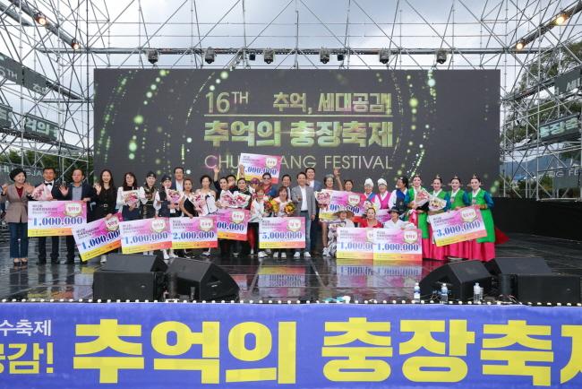 ±¤ÁÖ µ¿±¸ Áö¿ø2µ¿ ¡®¿ì¸®Ãã&Çѱ¹¹«¿ë¡¯ÀÌ ÃÖ¿ì¼ö»óÀ», ÀÎõ ºÎÆò±¸ ºÎ°³1µ¿ ¡®±âŸ±³½Ç¡¯°ú ´ëÀü ¼±¸ ¸¸³âµ¿ ¡®³Å¸±³½Ç¡¯, °æ±â ¾È¼º½Ã ¾È¼º2µ¿ ¡®¿ä°¡ÆÛÆ÷¸Õ½º¡¯°¡ °¢°¢ ¿ì¼ö»óÀ» ¼ö»óÇß´Ù. ´õºÒ¾î ÃæºÏ ûÁֽà ¹Ì¿ø¸é ¡®3.1¸¸¼¼¿îµ¿¡¯ÆÀ ¿Ü 6°³ ÆÀÀÌ Àå·Á»óÀ» ¼ö»óÇÏ´Â µî Âü°¡ÆÀ ¸ðµÎ°¡ °ü¶÷°´µéÀÇ Å« È£ÀÀÀ» ¾òÀ¸¸ç ¿¶í °æ¿¬¹«´ë¸¦ ÆîÃÆ´Ù.