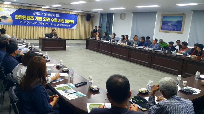 [È£³²´º½º¶óÀÎ = ¼ÀºÈ« ±âÀÚ] ±¤¾ç½Ã°¡ Áö³ 10¿ù 17ÀÏ(¸ñ)Áø¿ù¸é»ç¹«¼Ò ȸÀǽǿ¡¼ Áø¿ù¸é°ú ÅÂÀε¿ ÁÖ¹ÎÀ» ºñ·ÔÇÏ¿© °ü·Ã ´Üü 70¿© ¸íÀÌ Âü¼®ÇÑ °¡¿îµ¥ ¸Á´öÆ÷±¸ ¹× ¹è¾Ëµµ °ü±¤ÄÜÅÙÃ÷ ±¸Ãà¿¡ ½Ã¹ÎµéÀÇ ÀǰßÀ» µè´Â Åä·Ðȸ¸¦ °³ÃÖÇß´Ù°í ¹àÇû´Ù.