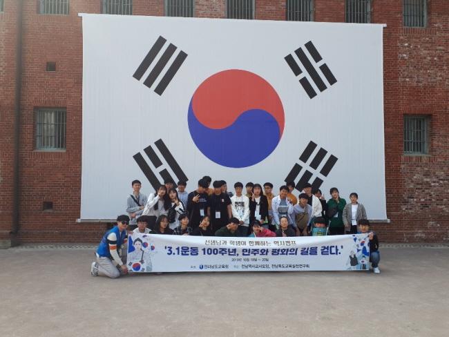 ¡®3.1¿îµ¿ 100ÁÖ³â, ¹ÎÁÖ¿Í ÆòÈÀÇ ±æÀ» °È´Ù¡¯¶ó´Â ÁÖÁ¦·Î ÁøÇàµÈ À̹ø ¿ª»çÄ·ÆäÀο¡´Â Àü³² Áö¿ª ±³»ç, Çлý 60¸íÀÌ Âü¿©ÇØ ÀÏÁ¦ Ä¡ÇÏ µ¶¸³¿îµ¿ ¿ª»çÀÇ ÇöÀåÀ» üÇèÇϸç 3.1¿îµ¿ÀÇ Àǹ̸¦ µÇ»õ°å´Ù.