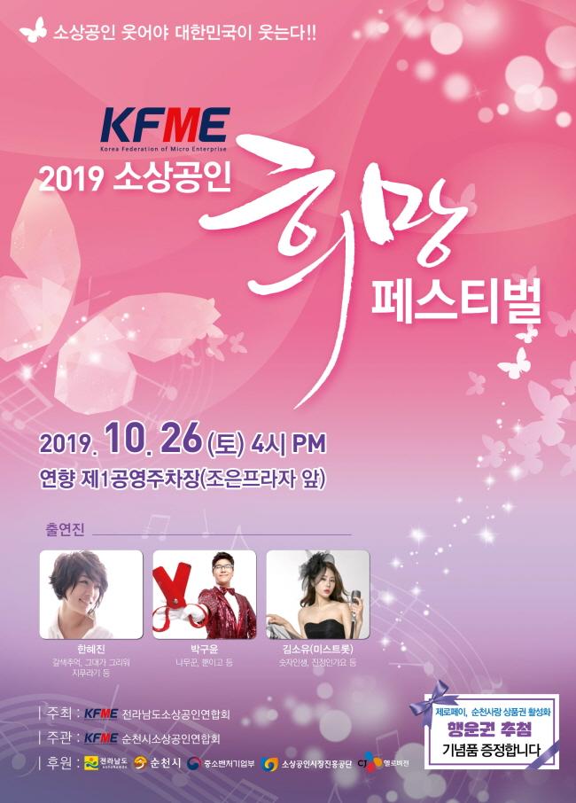 [È£³²´º½º¶óÀÎ = ¼ÀºÈ« ±âÀÚ] ¡®2019 ¼Ò»ó°øÀÎ Èñ¸ÁÆä½ºÆ¼¹ú¡¯ÀÌ Àü¶ó³²µµ¼Ò»ó°øÀο¬ÇÕȸ°¡ ÁÖÃÖÇÏ°í ¼øÃµ½Ã ¼Ò»ó°øÀο¬ÇÕȸ ÁÖ°üÀ¸·Î ¿À´Â 10¿ù 26ÀÏ(Åä) Á¶ÀºÇÁ¶óÀÚ ¾Õ ¿¬Çâ1ÁÖÂ÷Àå¿¡¼ °³ÃֵȴÙ.