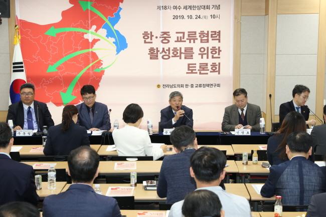 [È£³²´º½º¶óÀÎ = ¼ÀºÈ« ±âÀÚ] Àü¶ó³²µµÀÇȸ ÇÑÁß±³·ùÁ¤Ã¥¿¬±¸È¸(ȸÀå ¹®ÇàÁÖ)´Â 24ÀÏ ¿©¼ö¼¼°è¹Ú¶÷ȸÀå¿¡¼¡®ÇÑÁß ±³·ùÇù·Â Ȱ¼ºÈ¡¯¸¦ À§ÇÑ Åä·Ðȸ¸¦ °³ÃÖÇß´Ù.