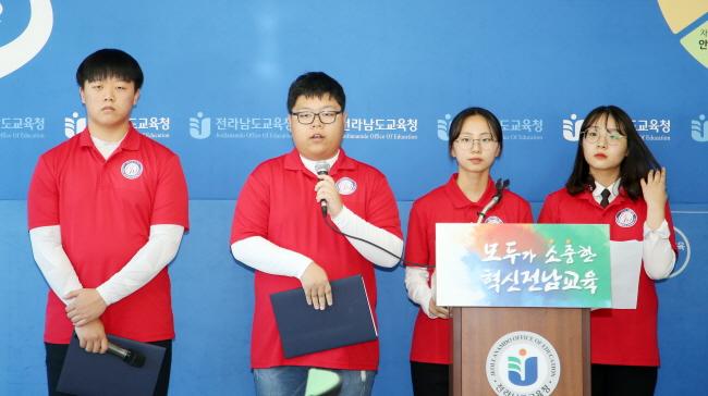 [È£³²´º½º¶óÀÎ = ¼ÀºÈ« ±âÀÚ] Àü³²±³À°Ã» 2019Àü³²ÅëÀÏÈñ¸Á¿Â÷Çб³(ÀÌÇÏ ¿Â÷Çб³) ÇлýµéÀÌ ±×°£ÀÇ ±³À°°úÁ¤À» ¸¶¹«¸®Çϸç Çѹݵµ ÆòÈÅëÀÏÀ» À§ÇÑ ÀϲÛÀ¸·Î ¾ÕÀå¼ ½ÇõÇϰڴٴ ¼±¾ð¹®À» ¹ßÇ¥Çß´Ù.