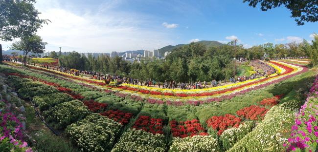 ±¹È, ÄÚ½º¸ð½º, ¾ï»õ, ÇÎÅ©¹Ä¸® µîÀÌ ¾î¿ï·Á ²É¸Á¿ïÀ» ÅÍÆ®¸®¸é¼ °ü¶÷°´À» À¯È¤Çϰí ÀÖ´Ù. 1¾ï2000¸¸ ¼ÛÀÌ ±¹È²É, ¸ùȯÀû ºÐÀ§±â¸¦ ¿¬ÃâÇÏ´Â ÇÎÅ©¹Ä¸®, ¾ï»õ²É, °÷°÷¿¡ ¹èÄ¡ÇÑ ´ëÇü ±¹È Á¶Çü¹°ÀÌ Åº¼ºÀÌ Àý·Î ³ª´Â Àå°üÀ» ¼±»çÇÑ´Ù. µ¿»ê °÷°÷ÀÌ ¡®Àλý ¼¦¡¯À» ³²±â°í Ãß¾ïÀ» ´ã±â¿¡ ºÎÁ·ÇÔÀÌ ¾ø´Ù.