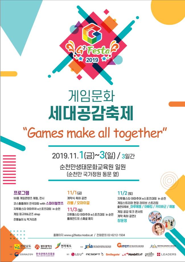 [È£³²´º½º¶óÀÎ = ¼ÀºÈ« ±âÀÚ] ¼øÃµ½Ã´Â Àü¶ó³²µµ, Àü¶óºÏµµ, ±¤ÁÖ±¤¿ª½Ã°¡ °øµ¿À¸·Î ÁÖÃÖÇϴ ȣ³²±Ç ÃÖ´ë °ÔÀÓ Àü½ÃȸÀÎ ¡®2019 Á¦3ȸ ÁöÅõÆä½ºÅ¸(G2Festa)¡¯¿Í ¼øÃµ½Ã°¡ ÁÖÃÖÇÏ´Â ¡®Àü±¹ ¾Æ¸¶Ãß¾î e½ºÆ÷Ã÷ ´ëȸ¡¯°¡ 11¿ù 1ÀÏ(±Ý) ~ 3ÀÏ(ÀÏ)±îÁö ¼øÃµ½Ã ¼øÃµ¸¸»ýŹ®È±³À°¿ø¿¡¼ °³ÃֵȴÙ.