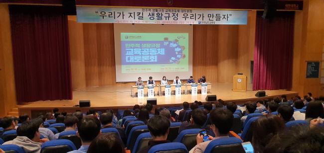 ±è¼º¾Ö Çлý»ýȰ¾ÈÀü°úÀåÀº ¡°À̹ø Åä·Ðȸ¸¦ ÅëÇØ ¹ÎÁÖÀû »ýȰ±ÔÁ¤¿¡ ´ëÇÑ ±³À°°¡Á·µéÀÇ ´Ù¾çÇÑ ÀǰßÀ» ¼ö·ÅÇß´Ù¸é¼, À̸¦ ¹ÙÅÁÀ¸·Î Çлý, Çкθð, ±³Á÷¿ø ¸ðµÎ°¡ ÇÔ²² ½ÇõÇÒ ¼ö ÀÖ´Â »ýȰ±ÔÁ¤ÀÌ ¸¸µé¾îÁö±æ ±â´ëÇÑ´Ù.¡±°í ¸»Çß´Ù.