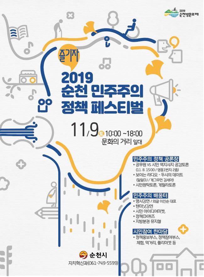 [È£³²´º½º¶óÀÎ = ¼ÀºÈ« ±âÀÚ] ¼øÃµ½Ã´Â¡®28¸¸ ¹ÎÁֽùÎÀÌ ¸¸µé¾î °¡´Â ´õ ÇູÇÑ ¼øÃµ¡¯À» ÁÖÁ¦·Î ¡®2019 ¹ÎÁÖÁÖÀÇ Á¤Ã¥ Æä½ºÆ¼¹ú¡¯À» ¿À´Â 9ÀÏ(Åä) ¹®ÈÀÇ °Å¸®¿¡¼ °³ÃÖÇÑ´Ù°í ¹àÇû´Ù.
