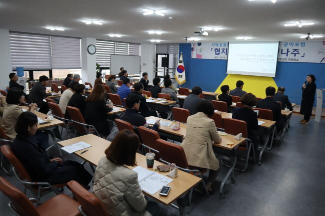 À̹ø Æ÷·³Àº ½Ã¹ÎÀÌ Âü¿©ÇÏ´Â °ø·ÐÀÇ ÀåÀ» ÅëÇØ Áö¿ª »ó»ý¿¡ ´ëÇÑ ³íÀǸ¦ Ȱ¼ºÈ½Ã۰íÀÚ ¸¶·ÃµÆÀ¸¸ç, ¡®ÇùÄ¡¸¦ ÅëÇÑ »ó»ý³ªÁÖ¡¯¸¦ ÁÖÁ¦·Î ÇùÄ¡ °³³ä Á¤¸³À» À§ÇÑ Àü¹®°¡ ¹ßÁ¦¿Í Âü¼®ÀÚ °£ÀÇ ÀǰßÀ» °øÀ¯ÇÏ´Â ÁúÀÇÀÀ´äÀÌ ÁøÇàµÆ´Ù.