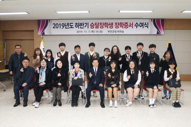 [È£³²´º½º¶óÀÎ = ¼ÀºÈ« ±âÀÚ] ¹«¾È±º ½Â´ÞÀåÇÐȸ´Â Áö³ 7ÀÏ ¹«¾È±ºÃ» ȸÀǽǿ¡¼ ÀåÇлý ¹× ¿ì¼öÁöµµ±³»ç, Çкθð 50¿©¸íÀÌ Âü¼®ÇÑ °¡¿îµ¥ ½Â´ÞÀåÇÐ±Ý Àü´Þ½ÄÀ» °¡Á³´Ù.