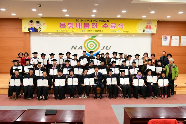 [È£³²´º½º¶óÀÎ = ¼­ÀºÈ« ±âÀÚ] ³ªÁÖ½Ã(½ÃÀå °­ÀαÔ)´Â 8ÀÏ ½Ãû ´ëȸÀǽǿ¡¼­ ¼ºÀι®Çر³½Ç Âü¿©ÀÚ ¹× °­»ç µî 80¿©¸íÀÌ Âü¼®ÇÑ °¡¿îµ¥ ¡®2019³â ¼ºÀι®Çر³½Ç Àººû¹è¿òÅÍ ¼ö·á½Ä¡¯À» °³ÃÖÇß´Ù.