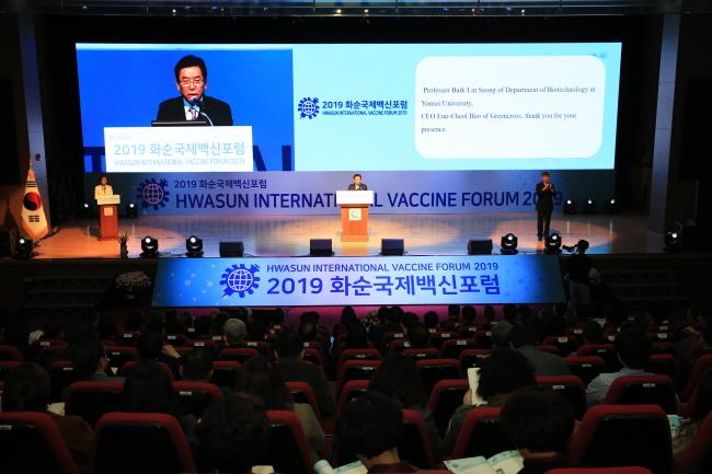 ÇÑÆí, ±¸Ãæ°ï È­¼ø±º¼ö´Â ¡°¿ÃÇØ·Î 4³â° À̾î¿Â È­¼ø±¹Á¦¹é½ÅÆ÷·³Àº ¹é½Å»ê¾÷ÀÇ ´ëÇ¥ÀûÀÎ ±¹Á¦Æ÷·³À¸·Î ÀÚ¸® Àâ¾Ò°í, ¼¼°è Ä¡·á¹é½Å°ú ¸é¿ªÄ¡·á ¿¬±¸ ¼º°ú¸¦ °øÀ¯Çϰí È­¼ø¹é½Å»ê¾÷Ư±¸ÀÇ ¿ªÇÒ°ú ºñÀüÀ» ¸ð»öÇÏ´Â ÀÚ¸®¿´´Ù¸ç, ¿ì¸® È­¼øÀÌ Â÷¼¼´ë ¹é½Å»ê¾÷À» ¼±µµ, ¼±Á¡ÇØ ±Û·Î¹ú Á¦¾àȸ»çÀÇ ÅõÀÚ¸¦ À¯Ä¡Çϰí Áö¿ª°æÁ¦ÀÇ »õ·Î¿î Ȱ·Î¸¦ °³Ã´Çϰڴ١±°í ¹àÇû´Ù.