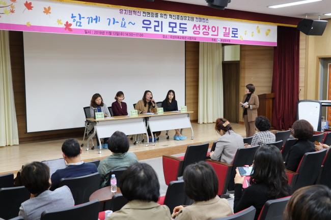 À̾î ÁøÇàµÈ Åä·Ð¿¡¼´Â 4°÷ Çõ½ÅÀ¯Ä¡¿øÀÇ Àü¹®Àû ÇнÀ°øµ¿Ã¼ »ç·Ê¸¦ °øÀ¯Çϸç, Ȱ¼ºÈ ¹æ¾ÈÀ» ¸ð»öÇß´Ù. °íÈïǪ¸¥²ÞÀ¯Ä¡¿ø À±¹Î¿µ ±³»ç´Â ¡°¿ÃÇØ´Â ´Ù¾çÇÑ ÁÖÁ¦ÀÇ ÄÁ¼³ÆÃ°ú °ÀÇ, ¿¬¼ö µîÀ» ÅëÇØ ±³»çÀÇ Àü¹®¼ºÀÌ Çâ»óµÊÀ» ´À²¼´Ù.¡±¸ç, ¡°³»³â¿¡´Â ÇÑ °¡Áö ÁÖÁ¦¸¦ Á¤ÇØ È¿À²¼ºÀ» ³ôÀ̰í, À¯¾ÆµéÀÇ Àǰ߰ú ±¸¼º¿øµéÀÇ ÈûÀ» ¸ð¾Æ °ø°£Çõ½ÅÀ» À̷ﺸ°í ½Í´Ù.¡±°í ¸»Çß´Ù