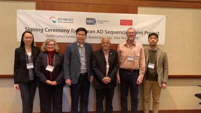 ¹Ì±¹ ±¹¸³º¸°Ç¿ø(NIH) »êÇÏ ±¹¸³³ëÈ¿¬±¸¼Ò(National Institute on Aging)·ÎºÎÅÍ ÇâÈÄ 5³â°£ ÃÑ 140¾ï¿© ¿øÀÇ ¿¬±¸ºñ¸¦ Áö¿ø¹Þ°Ô µÇ´Â À̹ø Çѹ̰øµ¿¿¬±¸ Çù¾à ü°áÀº ±¹¸³³ëÈ¿¬±¸¼Ò(National Institute on Aging) ³ú°úÇבּ¸ ÃѰýÃ¥ÀÓÀÚÀÎ ¿¤¸®¿¡ÀÚ ¸Å½½¸®¾Æ(Eliezer Masliah) ¹Ú»ç, Á¶¼±´ë Ä¡¸Å±¹Ã¥¿¬±¸´Ü À̰ÇÈ£ ´ÜÀå, º¸½ºÅÏ´ë ¸°Áö ÆÐ·² ¼®Á±³¼ö(Lindsay Farrer, º¸½ºÅÏÀǰú´ëÇÐ) µî 3ÀÚ°£¿¡ ÀÌ·ç¾îÁ³´Ù.