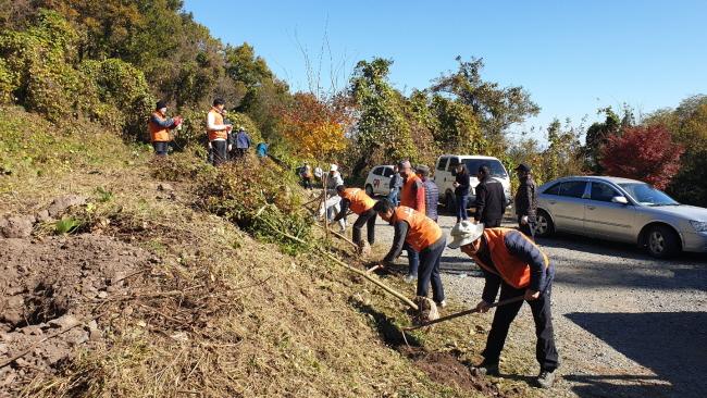 À̳¯ À²Ã̸é ÁÖ¹ÎÀÚÄ¡À§¿ø°ú Á÷¿ø µî 40¿© ¸íÀº ¾Þ¹«»ê µî»ê·Î ÁÖº¯ 1.5km ±¸°£¿¡ ´Üdz³ª¹« 150ÁÖ¸¦ ½É°í µîÀÇÀÚ 4°³¸¦ ¼³Ä¡Çß´Ù. À²Ã̸é ÁÖ¹ÎÀÚÄ¡À§¿øÈ¸´Â Áö³ 2013³âºÎÅÍ Æ¯È»ç¾÷À¸·Î ¾Þ¹«»ê¿¡ ´Üdz³ª¹«¿Í »ê¼öÀ¯³ª¹«¸¦ ½ÄÀçÇÏ´Â µî ¸íǰ Èú¸µ ½£±æ Á¶¼º¿¡ Èû¾²°í ÀÖ´Ù.