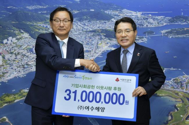 [È£³²´º½º¶óÀÎ = ¼ÀºÈ« ±âÀÚ] ¿©¼ö½Ã´Â Áö³ 18ÀÏ ¿ÀÈÄ ¢ß¿©¼öÇØ¾ç(ȸÀå Á¤ÀÎÇö)ÀÌ ¾î·Á¿î ÀÌ¿ôÀ» À§ÇØ ½á´Þ¶ó¸ç ¿©¼ö½Ã¿¡ ¹é¹Ì¿Í ¹®±¸·ù µî ÈÄ¿øÇ° 3100¸¸ ¿ø »ó´çÀ» ±âŹÇß´Ù.