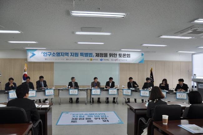 [È£³²´º½º¶óÀÎ = ¼ÀºÈ« ±âÀÚ] Àü¶ó³²µµ´Â ³óÃÌÁö¿ª Àα¸ °¨¼Ò ¹®Á¦ ÇØ°áÀ» À§ÇØ °æ»óºÏµµ¿Í °øµ¿À¸·Î 20ÀÏ ±¤ÁÖÀü³²¿¬±¸¿ø¿¡¼ 100¿© ¸íÀÌ Âü¼®ÇÑ °¡¿îµ¥ ¡®Àα¸¼Ò¸êÁö¿ª Áö¿ø Ưº°¹ý¡¯ Á¦Á¤ Çʿ伺°ú ½ÇÈ¿¼º ÀÖ´Â ¹ý¾È ¸¶·ÃÀ̶õ ÁÖÁ¦·Î Åä·Ðȸ¸¦ °³ÃÖÇß´Ù.