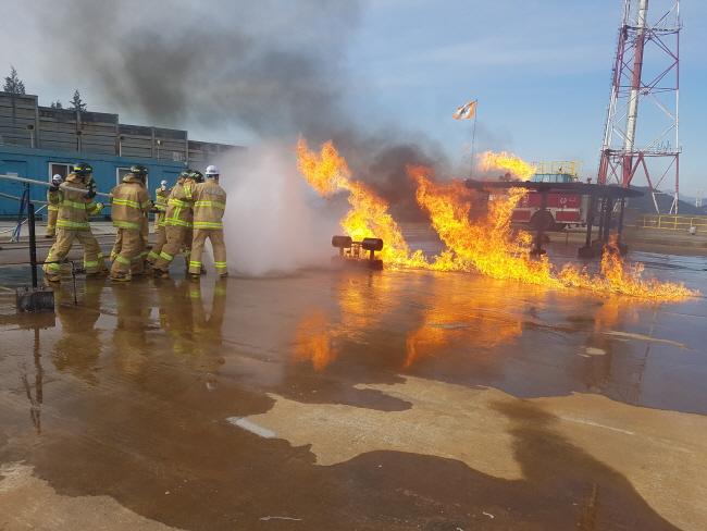 Àü³² ¼Ò¹æ°ø¹«¿ø 100¸íÀ» ´ë»óÀ¸·Î ½Ç½ÃÇÑ À̹ø ÈÆ·ÃÀº ¿©¼ö¼®À¯ÈÇдÜÁöÀÇ °¢Á¾ Æø¹ß, ÈÀç»ç°í µî¿¡ ´ëºñÇÏ°í Æ¯¼öÀç³ ¹× À§Çè¹° ÈÀçÁø¾Ð´É·ÂÀ» ¹è¾çÇϱâ À§ÇØ ÀÌ·ïÁ³´Ù. À§Çè¹°, °¡½ºÈÀç¿¡ ´ëÇÑ À̷б³À°°ú À¯·ùÈÀç °Çà ħÀÔ, ÅÊÅ©ÈÀç Áø¾Ð µî ½ÇÁ¦ Áø¾ÐÈÆ·Ã ÇÁ·Î±×·¥À¸·Î Æí¼ºµÆ´Ù.
