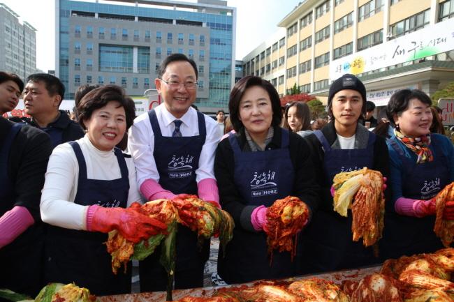 ÀڸŰῬ Çù¾à½Ä ÈÄ¿¡´Â ±¸·Î±¸Ã» ±¤Àå¿¡¼ ¹Ú¿µ¼± Áß¼Òº¥Ã³±â¾÷ºÎ Àå°ü°ú ¼ÕÇöÁÖ, Á¤Å¿ì, ¾çµ¿±Ù, À¯¼±¾¾ µî ¿µÈ¹è¿ì, Áö¿ª ¿©¼º´Üü ȸ¿ø µîÀÌ Âü¿©ÇÑ °¡¿îµ¥ Á¦3ȸ ¿µÈÀÎ »ç¶ûÀÇ ±èÄ¡³ª´©¹Ì Çà»ç°¡ ¿·È´Ù. ±èÄ¡³ª´©¹Ì Çà»ç¿¡ ¾²ÀÎ ÀýÀÓ¹èÃß¿Í ¾ç³ä µîÀº Àü·® ÇØ³²¿¡¼ °ø±ÞµÆÀ¸¸ç, ¸¸µé¾îÁø ±èÄ¡ 1,500¹Ú½º(5kg)´Â ±¸·Î±¸³» Àú¼ÒµæÃþ°ú »çȸº¹Áö ´Üü µî¿¡ Àü´ÞµÆ´Ù.