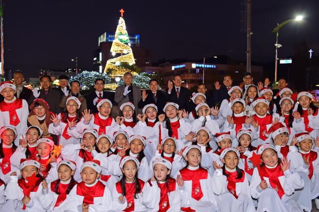 [È£³²´º½º¶óÀÎ = ¼ÀºÈ« ±âÀÚ] ¿©¼ö½Ã°¡ Áö³ 3ÀÏ Àú³á Çе¿ ½Ãû ¾Õ ·ÎÅ͸®¿¡¼ Å©¸®½º¸¶½ºÆ®¸® Á¡µî½ÄÀ» ¿°í »ç¶û°ú ÈÇÕÀ» ±â¿øÇß´Ù.