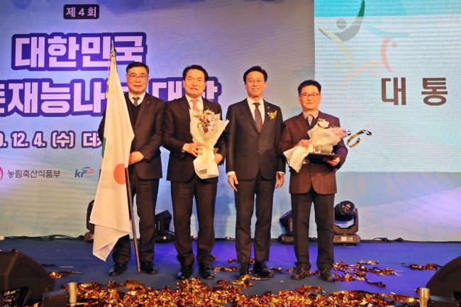 Áö³ 4ÀÏ ¼¿ï ´õÄÉÀÌÈ£ÅÚ¿¡¼ ¿¸° ¡®Á¦4ȸ ´ëÇѹα¹ ³óÃÌÀç´É³ª´® ´ë»ó¡¯¿¡¼ ÀåÈﱺÀº ¡®´ëÅë·É»ó¡¯ ¼ö»óÀÇ ¿µ¿¹¸¦ ¾È¾Ò´Ù. ³ó¸²Ãà»ê½ÄǰºÎ°¡ ÁÖÃÖÇϰí Çѱ¹³ó¾îÃ̰ø»ç°¡ ÁÖ°üÇÑ À̹ø °ø¸ð´Â 2³â ÀÌ»ó ´ëÇѹα¹ ³óÃÌÀç´É³ª´® Ȱµ¿À» ½ÇõÇÑ ´Üü³ª °³ÀÎÀ» ´ë»óÀ¸·Î Çß´Ù.