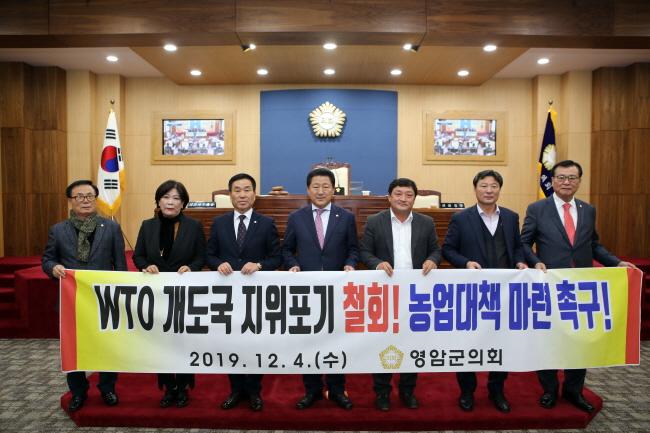 ÇÑÆí, ¿µ¾Ï±ºÀÇȸ´Â WTO °³µµ±¹ ÁöÀ§Æ÷±â ¹æÄ§¿¡ ±íÀº ¿ì·Á¸¦ Ç¥ÇÏ¸ç ¡°³ó¾÷¿¹»ê 4% È®º¸¡±, ¡° ³ó»ê¹° ÃÖÀú°¡°Ý º¸Àå ¹ýÁ¦È¡±, ¡°º¯µ¿Á÷ºÒÁ¦¸¦ À¯ÁöÇÏ°í °øÀÍÇüÁ÷ºÒÁ¦ ¿¹»ê 3Á¶¿ø ¾à¼Ó¡±, ¡°¸ðµç ±¹¹ÎÀÌ »ý¾ÖÁֱ⺰ °Ç°½Ä´ÜÀ» ´©¸± ±Ç¸®¸¦ ¼±¾ðÇϰí Ãë¾à °èÃþÀ» À§ÇÑ ³ó½Äǰ¹Ù¿ìóÁ¦µµ Àû±Ø µµÀÔ¡±, ¡°¼öÀÔ³ó»ê¹° ÇÇÇØ º¸È£Á¦µµ, °¡°Ý¼Õ½Ç º¸Á¶Á¦µµ ½Ç½Ã ¹× ³óÀÛ¹°ÀçÇØº¸Çè Àü¸é °³Æí¡± µî ³ó¾÷ ¹× ³óÃÌ¿¡ ´ëÇÑ ÀϽÃÀûÀÎ Á¤Ã¥ÀÌ ¾Æ´Ñ Ç×±¸ÀûÀ¸·Î ³ó¾÷¼ÒµæÀ» ¾ÈÁ¤È ½ÃŰ°í ³ó¾÷°æÀï·ÂÀ» Çâ»ó ½Ãų ¼ö ÀÖ´Â ³ó¾÷´ëÃ¥ ¸¶·ÃÀ» Ã˱¸Çß´Ù.