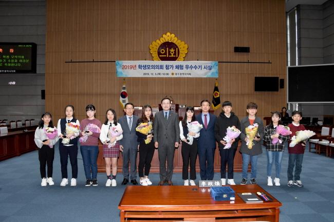 [È£³²´º½º¶óÀÎ = ¼ÀºÈ« ±âÀÚ] ±¤ÁÖ±¤¿ª½ÃÀÇȸ(ÀÇÀå ±èµ¿Âù)´Â 2019³âµµ Çлý ¸ðÀÇÀÇȸ üÇè ¿ì¼ö¼ö±â ½Ã»ó½ÄÀ» 2019.12.5.(¸ñ) 10½Ã¿¡ ½ÃÀÇȸ º»È¸ÀÇÀå¿¡¼ °³ÃÖÇÏ¿´´Ù.