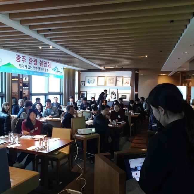 À̳¯ ¼³¸íȸ´Â ±¤ÁÖÀÇ °ü±¤µµ½Ã ºê·£µå À̹ÌÁö¸¦ °³¼±Çϰí Àü¹®¿©Çà»ç ³×Æ®¿öÅ©¸¦ È®´ëÇϱâ À§ÇÑ ÀÚ¸®·Î, ¢ß¸ðµÎÅõ¾î³×Æ®¿öÅ©, ¢ß·Ôµ¥°ü±¤°³¹ß, ¼º±¤Ç×°ø¿©Çà»ç, ±ÂÇÊÅõ¾î, Á¦ÀÎDMCÄÚ¸®¾Æ µî 30¿© °³ Àιٿîµå Àü¹® ¿©Çà¾÷ü ´ëÇ¥¿Í ±¤ÁÖ½Ã, ±¤ÁÖ°ü±¤ÄÁº¥¼Çºä·Î °ü°èÀÚ µî 60¿© ¸íÀÌ Âü¿©Çß´Ù.