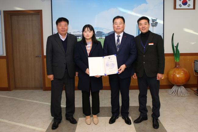 [È£³²´º½º¶óÀÎ = ¼ÀºÈ« ±âÀÚ] ¹«¾È±º(±º¼ö ±è»ê)Àº 2019³âµµ ÁÖ¹ÎÂü¿©¿¹»êÁ¦µµ ¿î¿µ ¿ì¼ö ÀÚÄ¡´Üü·Î ¼±Á¤µÇ¾î 12ÀÏ ÇàÁ¤¾ÈÀüºÎ Àå°ü»ó(±â°üǥâ)°ú Ưº°±³ºÎ¼¼ 2õ¸¸ ¿øÀ» ¹Þ¾Ò´Ù.