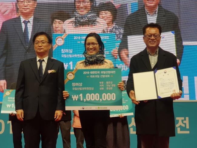 ±¹³» °ú¼öÀÇ ¿ì¼ö¼ºÀ» È«º¸ÇÏ°í °ú¼ö³ó°¡ÀÇ °æ¿µ ¹× ¼Òµæ Áõ´ë¿¡ ±â¿©ÇϰíÀÚ ³ó¸²Ãà»ê½ÄǰºÎ¿¡¼ ÁÖÃÖÇϰí Çѱ¹°ú¼ö³ó¿¬ÇÕȸ¿Í »ê¸²Ã»¿¡¼ ÁÖ°üÇÏ¿© ºÎ»ê BEXCO¿¡¼ 13~14ÀÏ ÀÌÆ²°£ °³ÃÖÇÑ À̹ø ´ëÇѹα¹ °úÀÏ»ê¾÷´ëÀü¿¡¼ ¿µ¾Ï±º ½ÅºÏ¸é ±Ý¼ö¸® ¹éÁ¦³óÀåÀÇ ¹®¼º¹® ³ó°¡´Â °ú¿ø ½É»çºÎÅÍ ½É»çÀ§¿øÀÇ ±ØÂùÀ» ¹ÞÀ¸¸ç Àå·Á»ó(±¹¸³»ê¸²°úÇпøÀå»ó)À» ¼ö»ó Çß´Ù.
